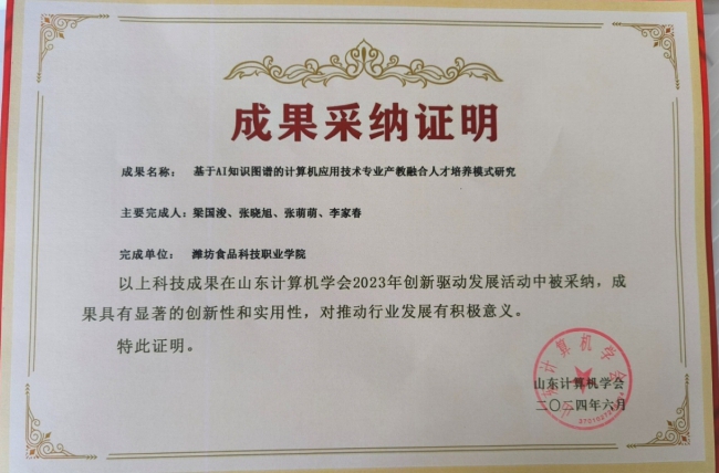 时间:2024-07-22浏览:2600次近日,我校主持的“基于AI知识图谱的计算机应用技术专业产教融合人才培养模式研究”课题,在山东计算机学会创新驱动发展活动中被采纳为可转移转化的科技成果。2023年度,山东计算机学会承接的“青岛虚拟现实整机产业 ...